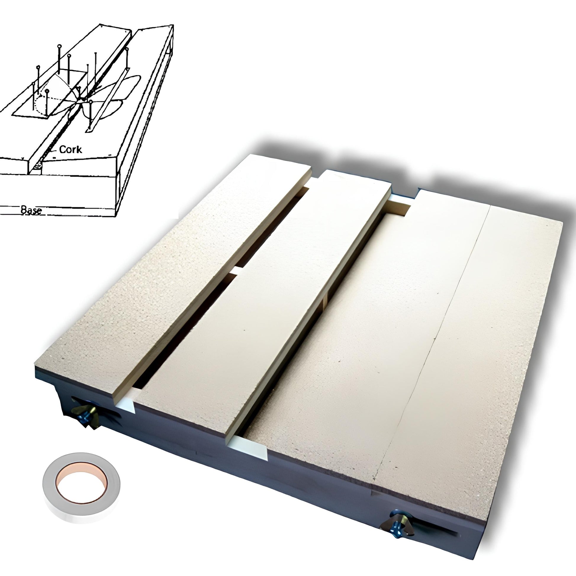 展翅板是用來固定蝴蝶等飛蟲翅膀的工具。下層材質為木板、上層鋪有兩片軟木或保麗龍板,以供針插;板面光滑,避免傷害鱗粉。中間留有一溝,放置蟲體。本款板面是軟質的膠合軟木板,適合插針使用,在乾燥箱中烘烤不易變形。本板具兩塊活動板,可調整成兩列標準型的展翅板,溝寬可以自由調整。或合併成一超大型展翅板,展翅最大型的蝶蛾均綽綽有餘。還可以當甲蟲的展足板。一板三用,非常實用。尺寸 L300 x W268 x H40mm。