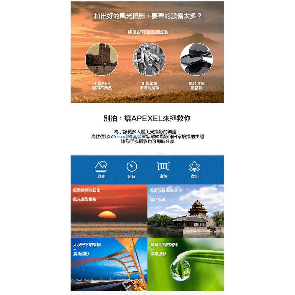 APEXEL 七合一漸變外接手機濾鏡-APL-52UV-7G