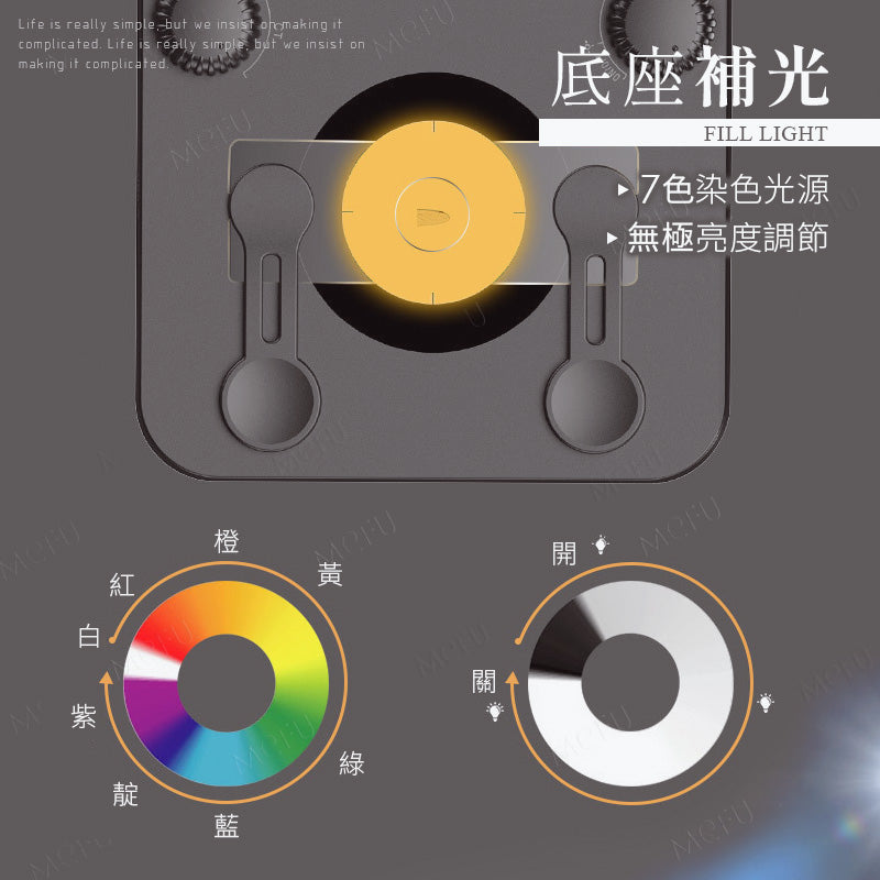 🔥底座照明補光,7色背光染色亮度調整,效果更清晰透亮