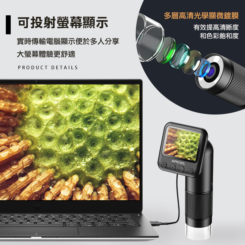 🔥輕鬆攜帶 隨時隨地探索微觀世界 應用於各種行業需求 教學/生物/電路/皮膚觀察