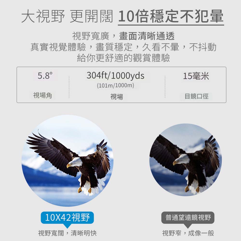 🔥高解析度的10倍(42mm物鏡直徑)視角,使您看得更遠、更清晰