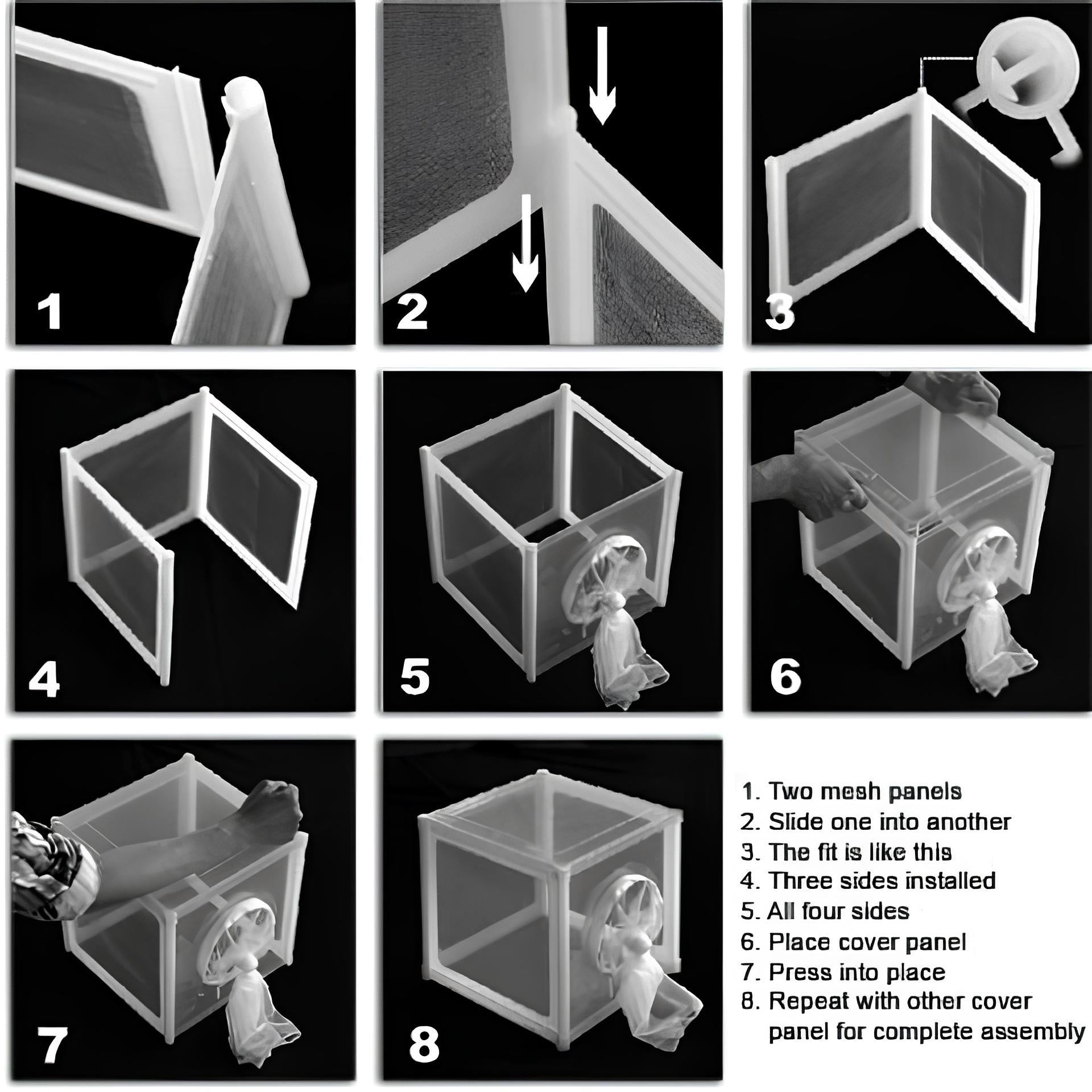 最受歡迎的專業養蟲籠,產品特色:1. 組合拆卸容易。2. 可清洗,易於維持清潔,增加存活率。3. 耐化性佳,適用於生物檢定。4. 面板及蓋板均透明,觀察方便。5. 蓋板留有割線,可輕易組合加高。組立後尺寸 L30×W30×H30cm,重量為 1110g。