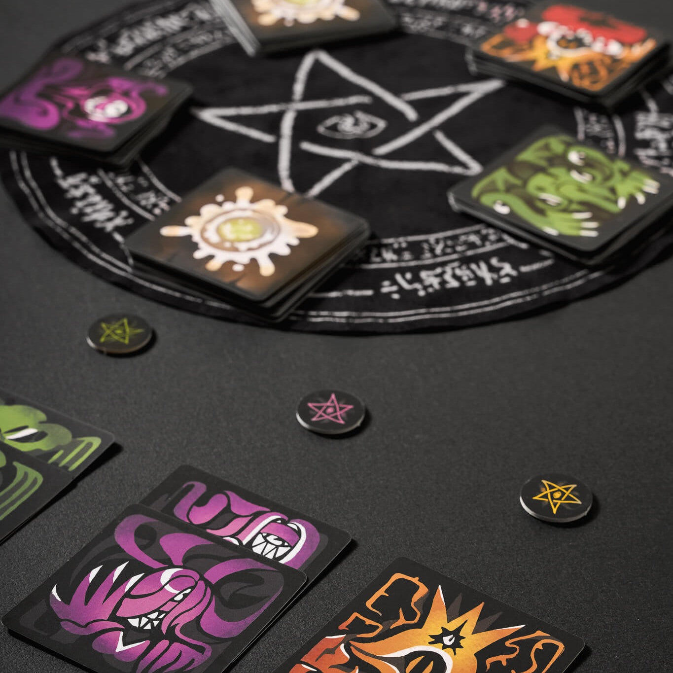 The moment you lift the lid, 80 omen cards, blessing seals, and ancient magic circles surge forth like a black tide — blessings, point-stealing, reversals, and destruction spread across the entire table.