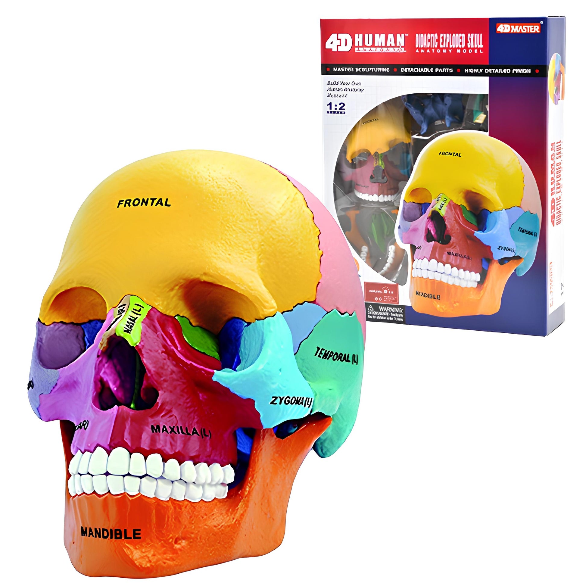 4D人體模型系列已榮獲部份國家 評選列入教育部的 教學教材 4D人體頭骨組合模型, 是 4D Vision 透視模型系列的成員之一,本系列產品由全球知名的玩具製造商─香港 Fame Master 公司所研發製造。4D Master人體模型系列已榮獲部份國家評選列入教育部的教學教材。命名為"4D"是意指是長寬高 3 "D" imensions +Details(細部精細)的意思。模型每個部位精緻擬真的玩具設計,在動手拼裝時可以對生物細部構造深刻的了解。在學校生物教育上,不但降低了老師的教具成本,更活潑了學校的生物課程。