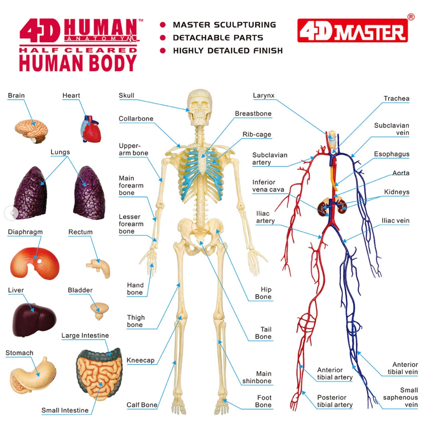 4D人體模型系列已榮獲部份國家 評選列入教育部的 教學教材 4D全透視人體組合模型是4D Human 透視模型系列的成員之一,本系列產品由全球知名的玩具製造商─香港 Fame Master 公司所研發製造。4D Master人體模型系列已榮獲部份國家評選列入教育部的教學教材。命名為"4D"是意指是長寬高 3 "D" imensions +Details(細部精細)的意思。模型每個部位精緻擬真的玩具設計,在動手拼裝時可以對生物細部構造深刻的了解。在學校生物教育上,不但降低了老師的教具成本,更活潑了學校的生物課程。