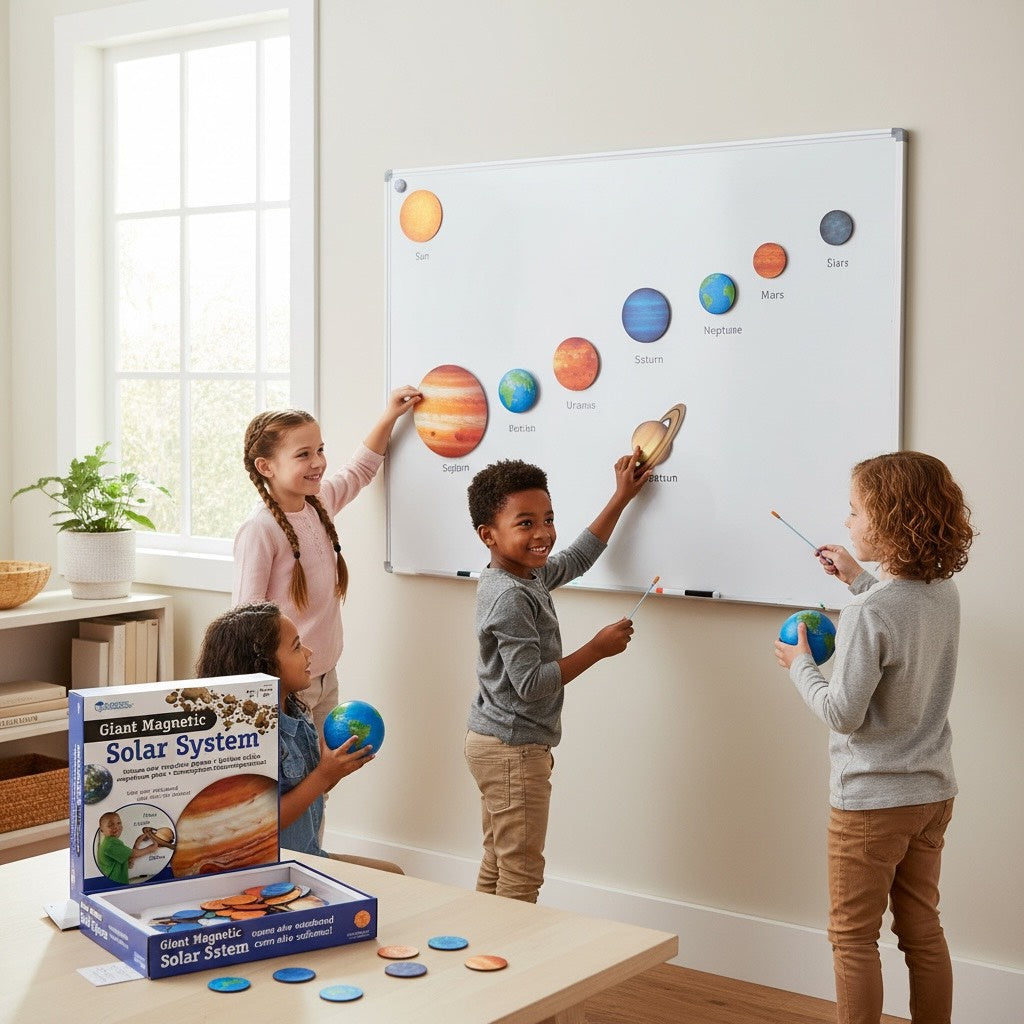 可吸附於白板、冰箱或磁性牆面,自由排列行星位置,讓孩子在「貼、移、排」的過程中,加深記憶與理解。