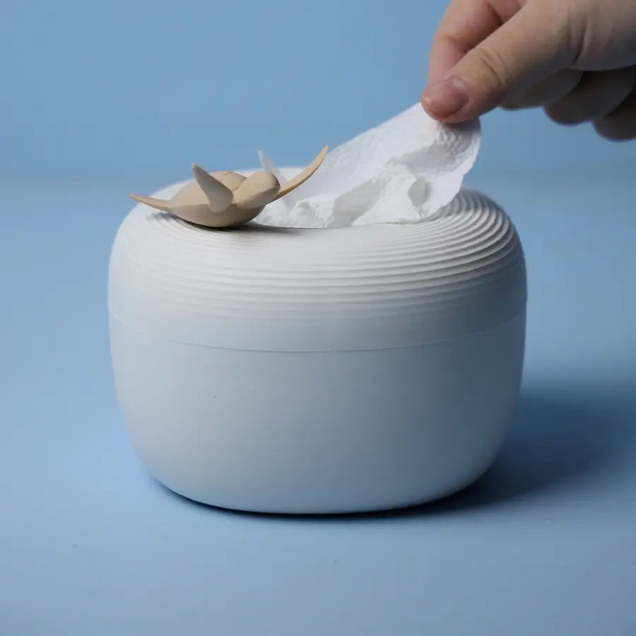 以鵝卵石自然流動的形態為靈感,打造成從各個角度看皆展現獨特風貌的衛生紙盒,流暢的線條營造出立體層次,像是手工藝品般細膩,用心呈現每一處的觸感。設計不侷限於傳統形式,呈現自由、純粹的美感,也呼應對環境友善的堅持。