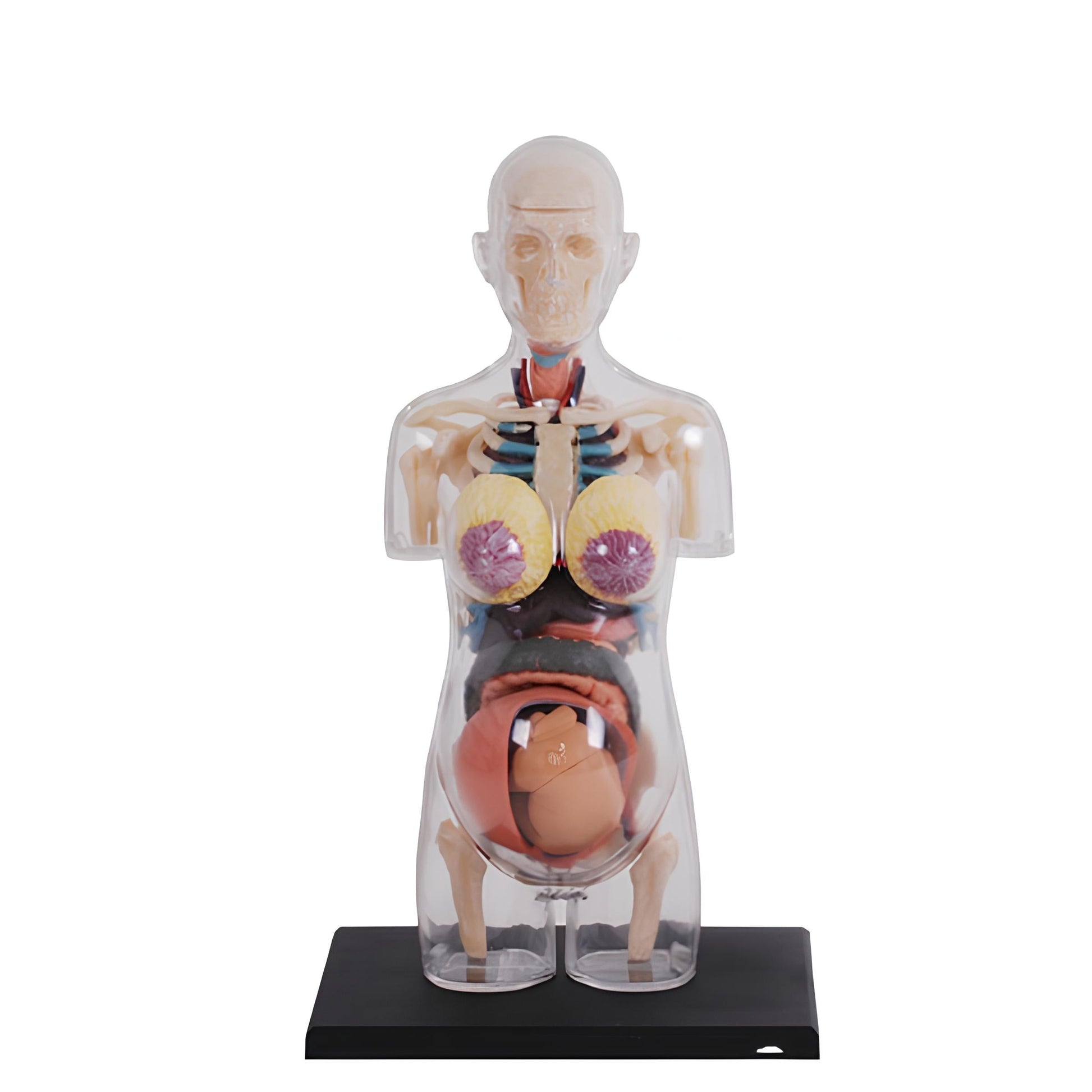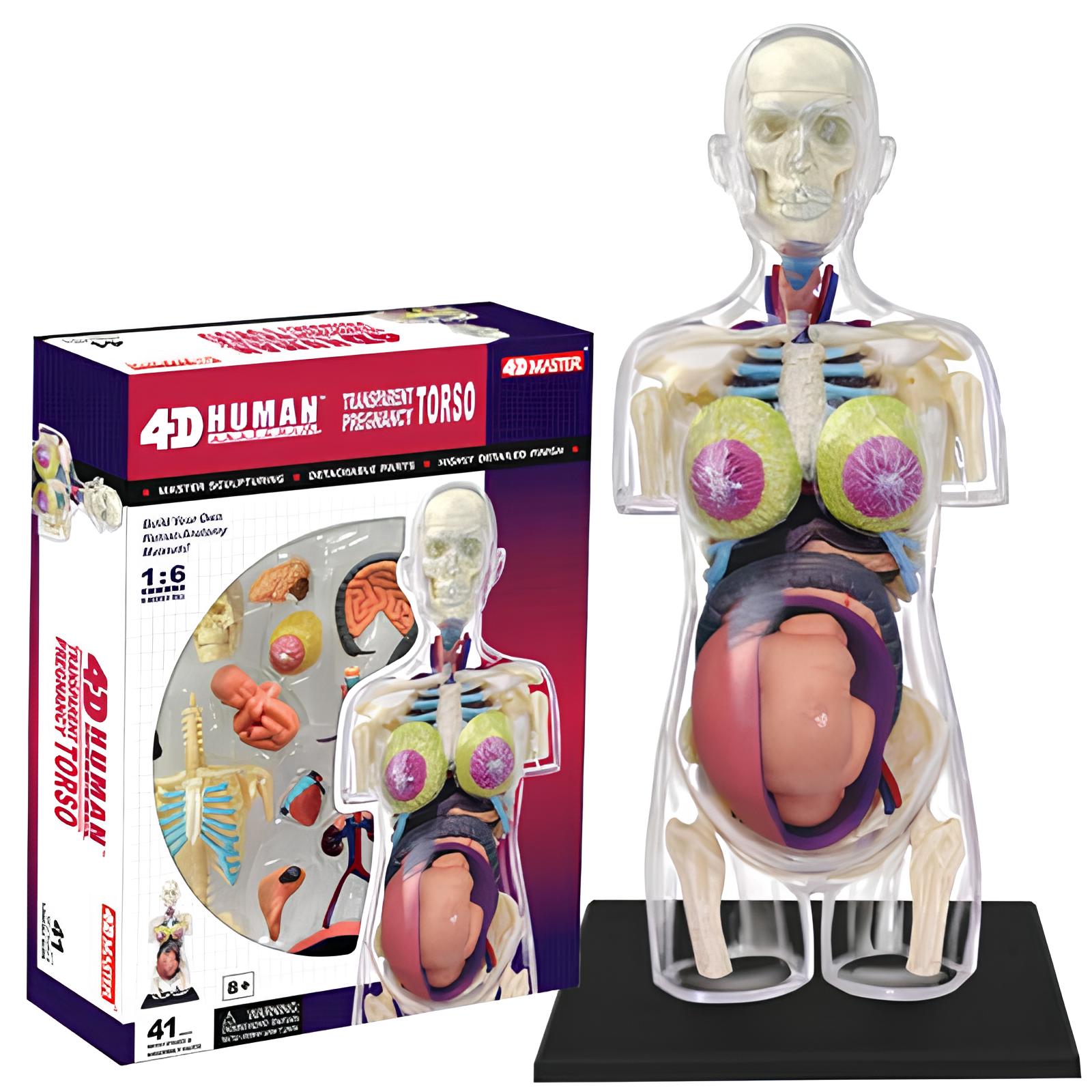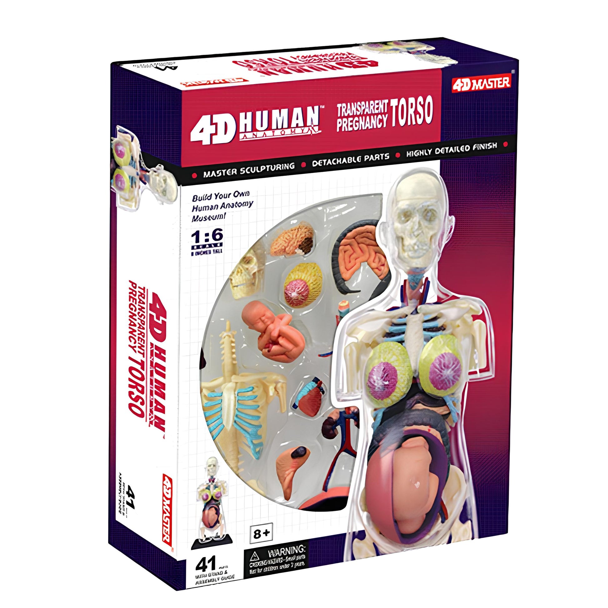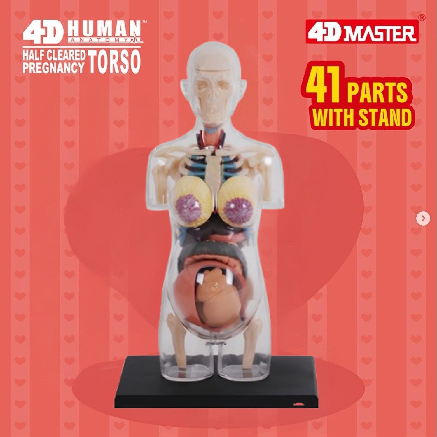 《4D透視女性懷孕妊娠組合模型》透視女性懷孕妊娠模型,展示剖面半身的骨骼和器官,共約41個零件組,組裝完成後的高度20cm,附指導手冊。