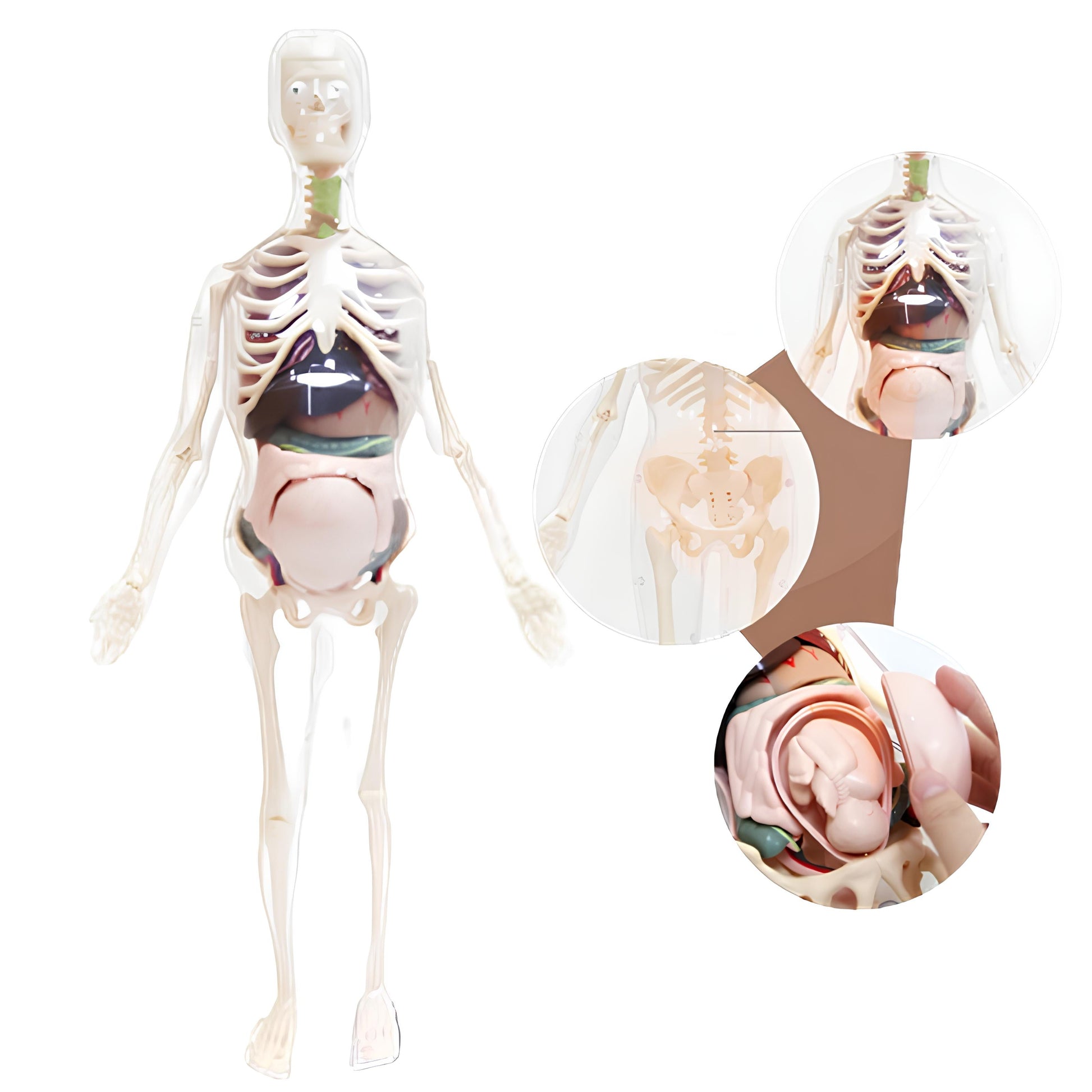 這款透視人體架構的擬真的模型包含詳記的骨骼架構以及器官零件模型,高達 56 公分的尺寸讓你不忽略任何奇妙的構造。 內含外殼透明人形,骨骼架構及 50 件器官零件。 透視人體架構,了解各部器官功能與位置,與懷孕媽媽的身體結構。在學校生物教育上,不但降低了老師的教具成本,更活潑了學校的生物課程。
