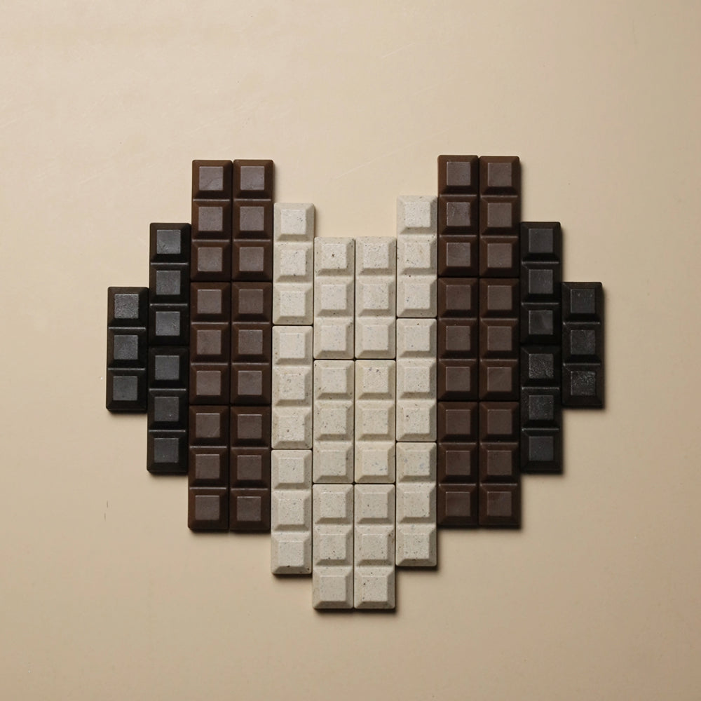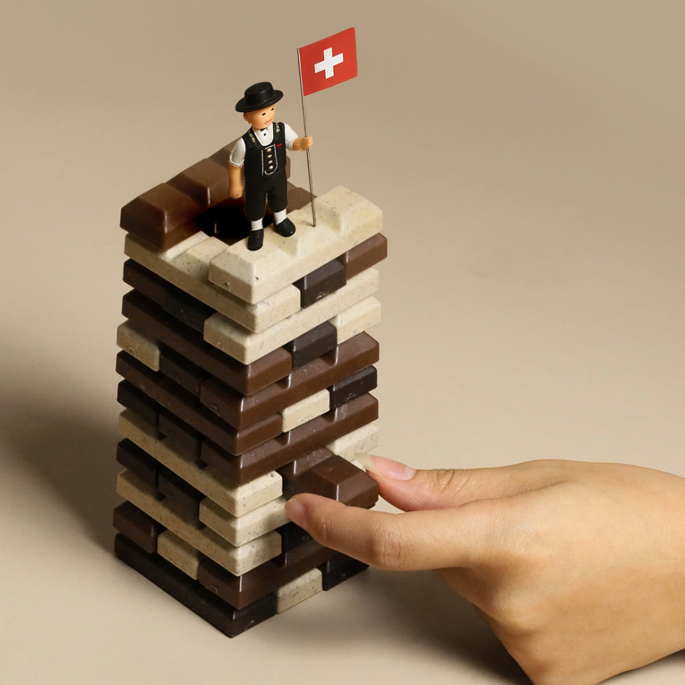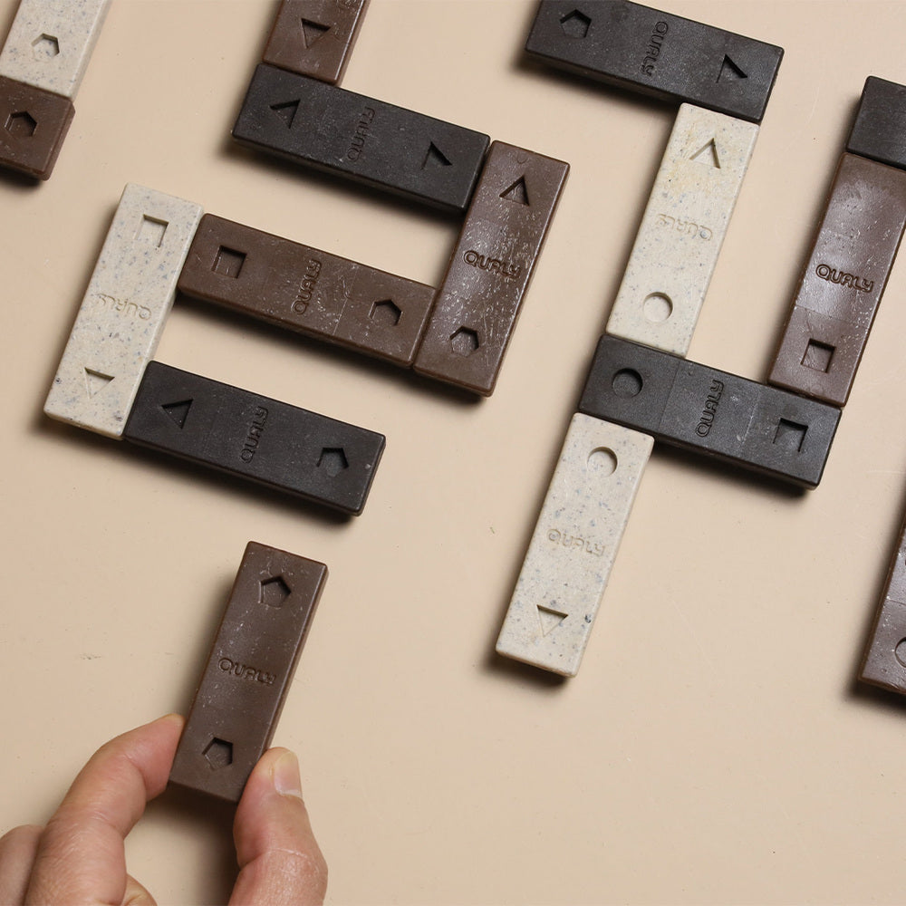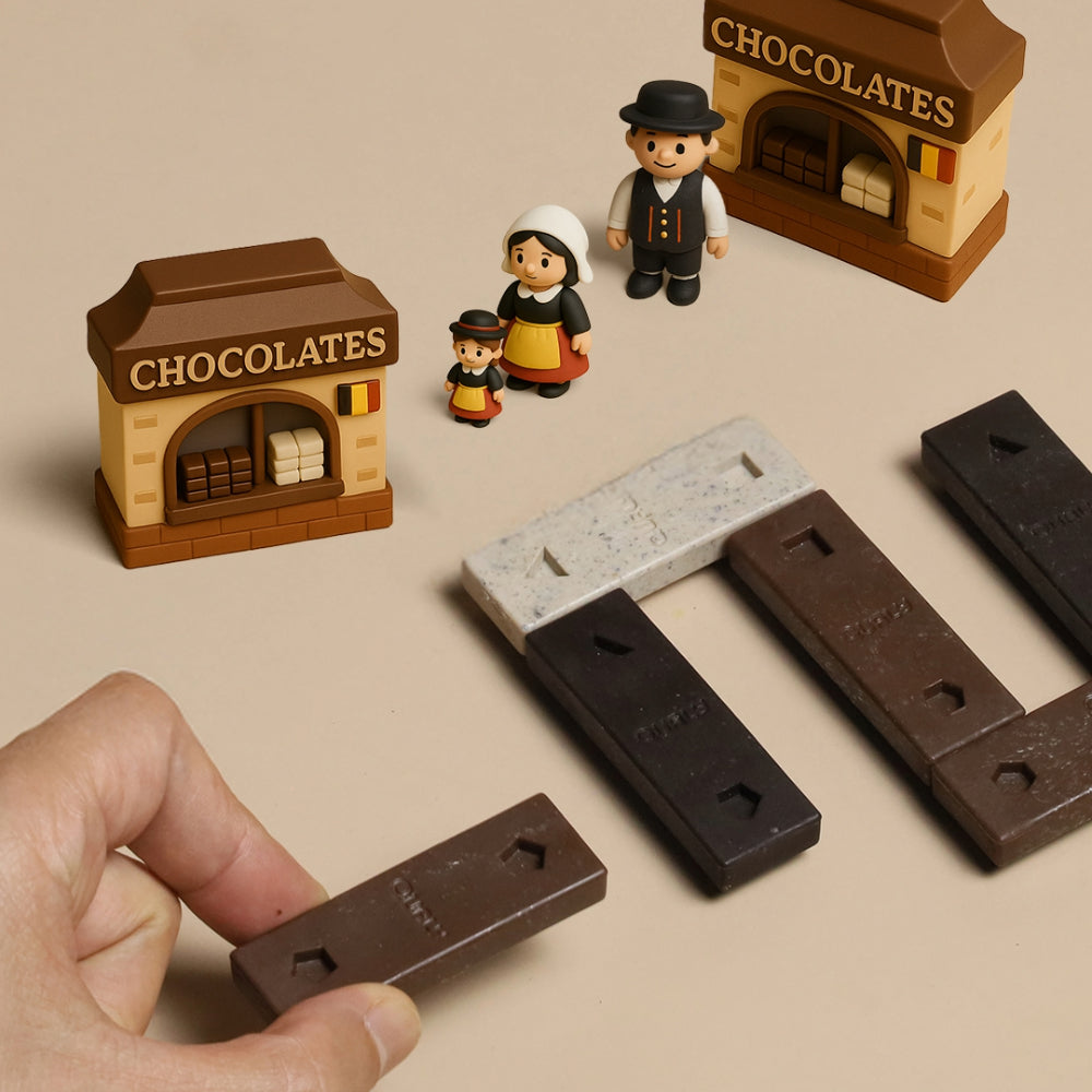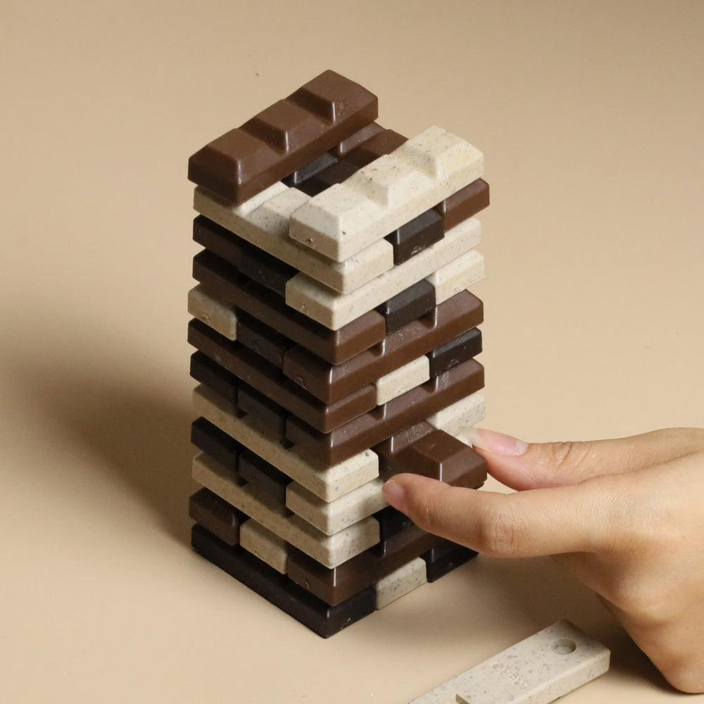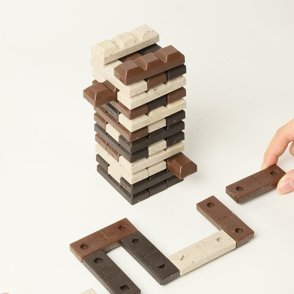 巧克力外型,由 100% 再生材料製成:95% 為食品與飲料塑膠包裝,5% 為可可殼,帶有淡淡可可香氣,兼具創意與環保。 共有三種玩法,透過遊戲培養孩子的思考力、記憶力與專注力,享受親子互動時光。